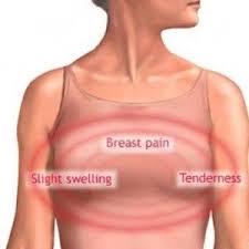 A breast injury or breast infection (mastitis) may cause redness, swelling and pain. It's important to have anything unusual checked by your doctor. You might have any of the following symptoms if your cancer has spread to the lymph nodes: 1 the good news is that it can be managed if caught in time and treated. A warm, red, swollen breast with or without a rash with dimpling resembling the skin of an orange, called peau d'orange pain in the breast, particularly breast pain that does not go away.